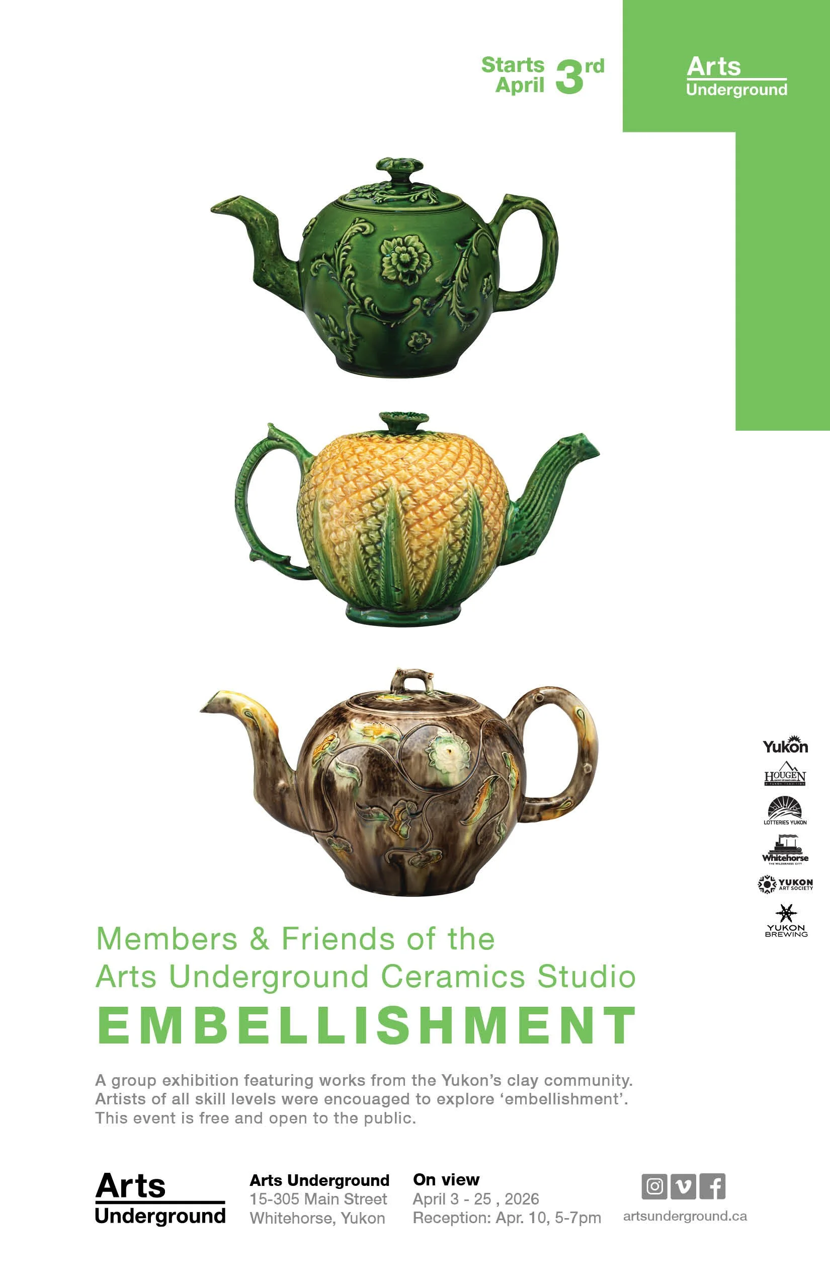 Yukon ceramic artists of all skill levels from across the territory were encouraged to participate in our April 2026 exhibition, ‘Embellishment’